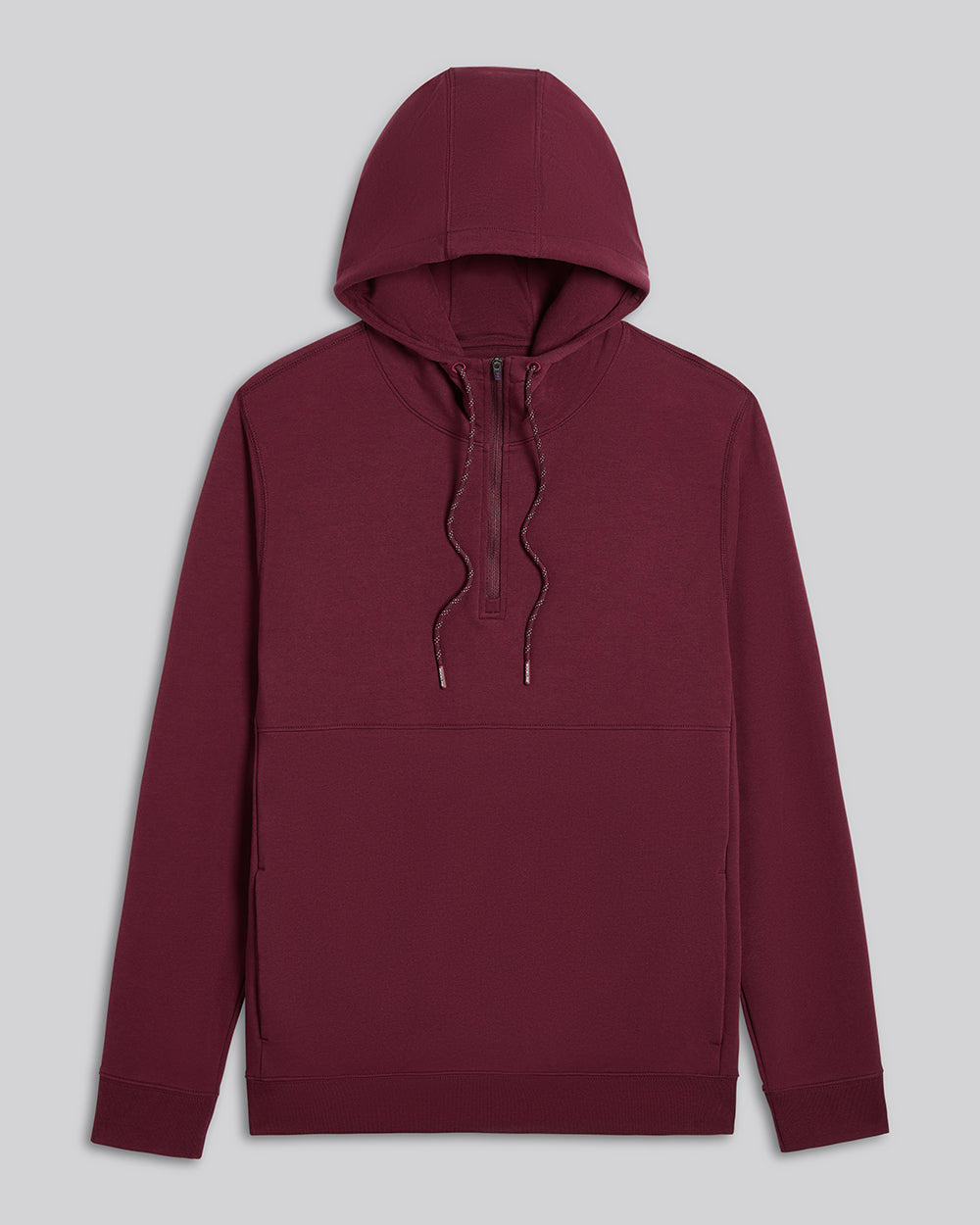 About the garment... A comfortable, classic, medium-weight hoodie made from tight-looped Peruvian French Terry. Practical design notes include individual pockets and a deep, but lightweight hood. Our Southside collection is crafted for versatile sportsmen – the Quarter Zip Hoodie will become a frequent companion on and off the course.
