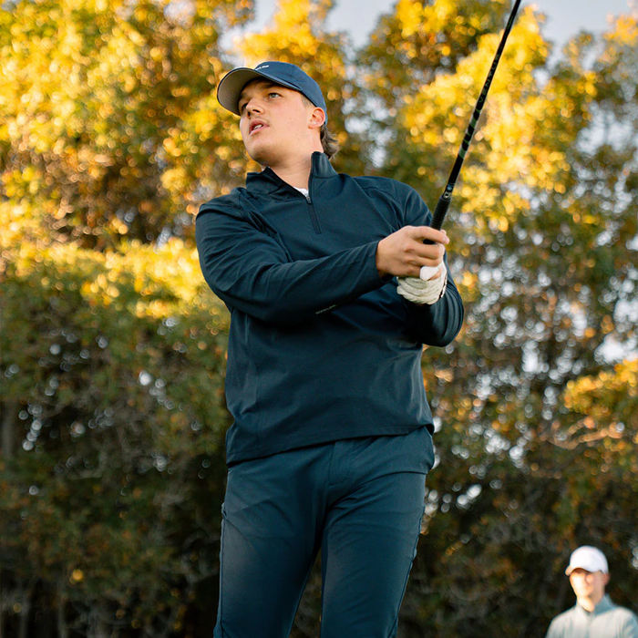 We test our gear the same way you'll use it; on real courses, in real conditions, with real stakes on the line. The Hudson quarter zip earned its place in our lineup because it solved problems we were tired of dealing with. Too hot. Too restrictive. Too delicate. Too boring.