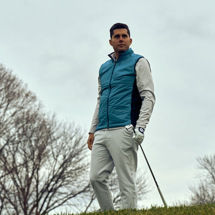 The result is an insulated golf vest that performs like a second skin. No bunching in the shoulders. No restriction through the chest. Just reliable warmth that lets you commit to the shot regardless of what the forecast has to say.